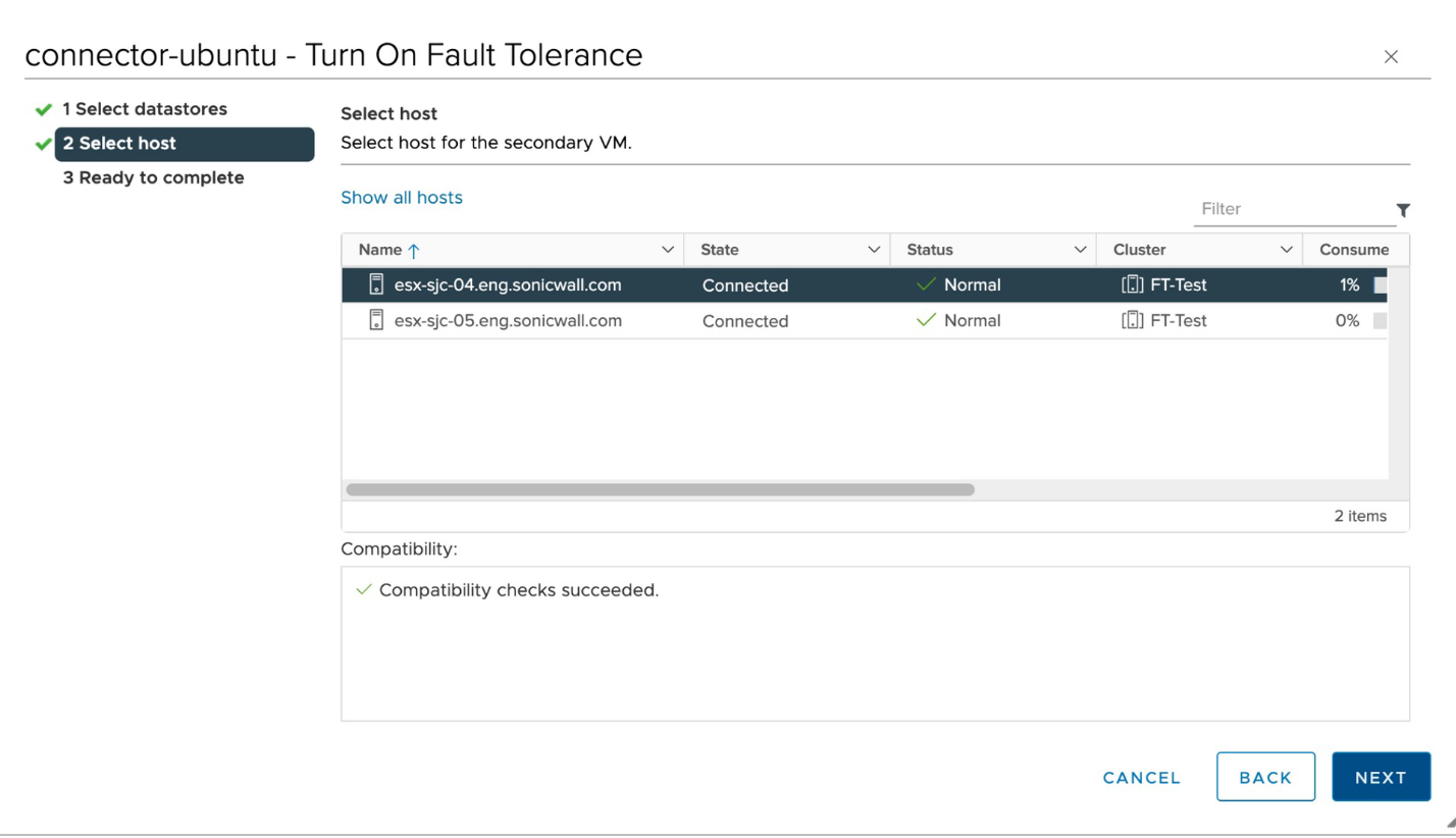 - Select the host that will have fault tolerance enabled.