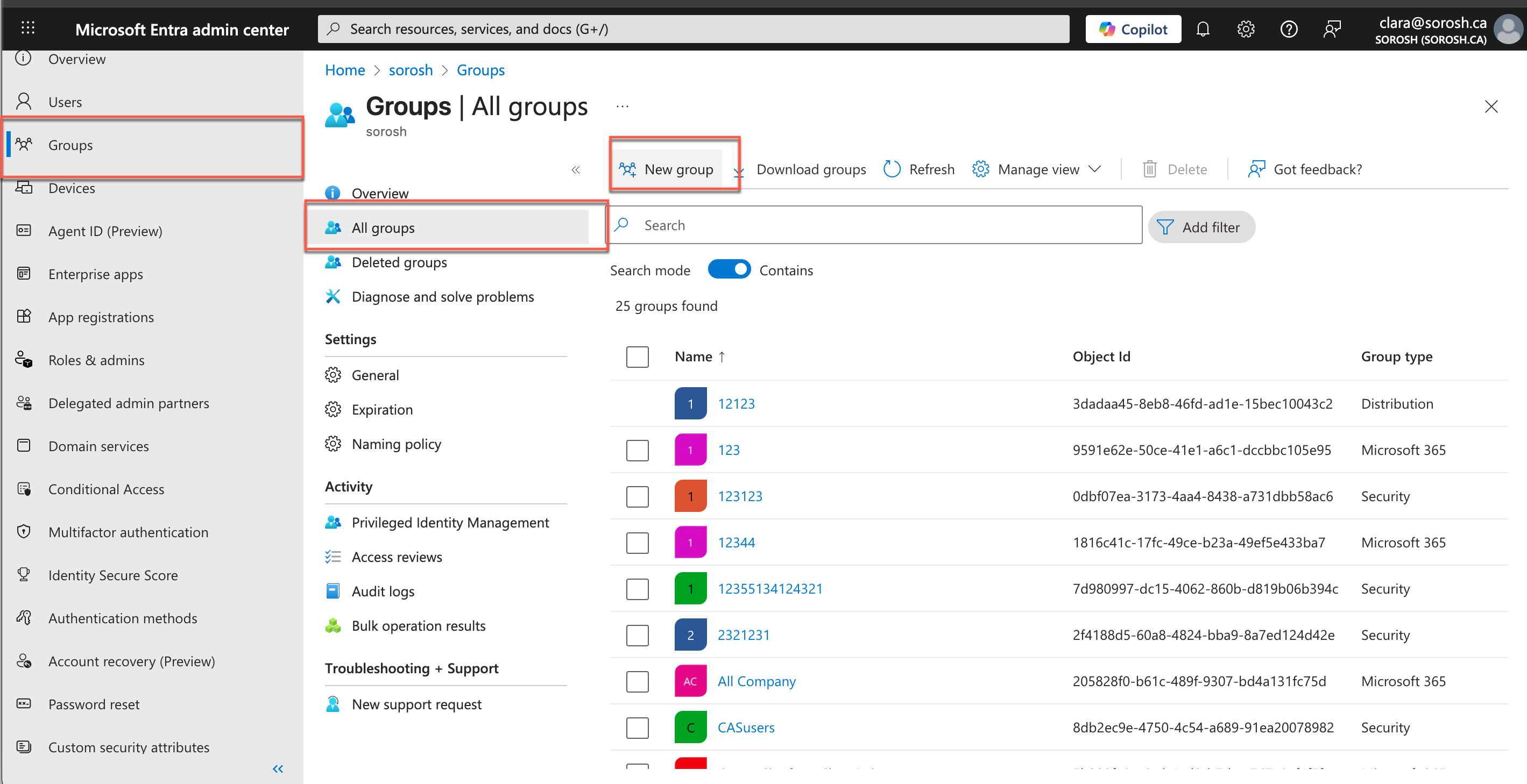 1.1 In the Entra admin center, navigate from Groups > All groups.